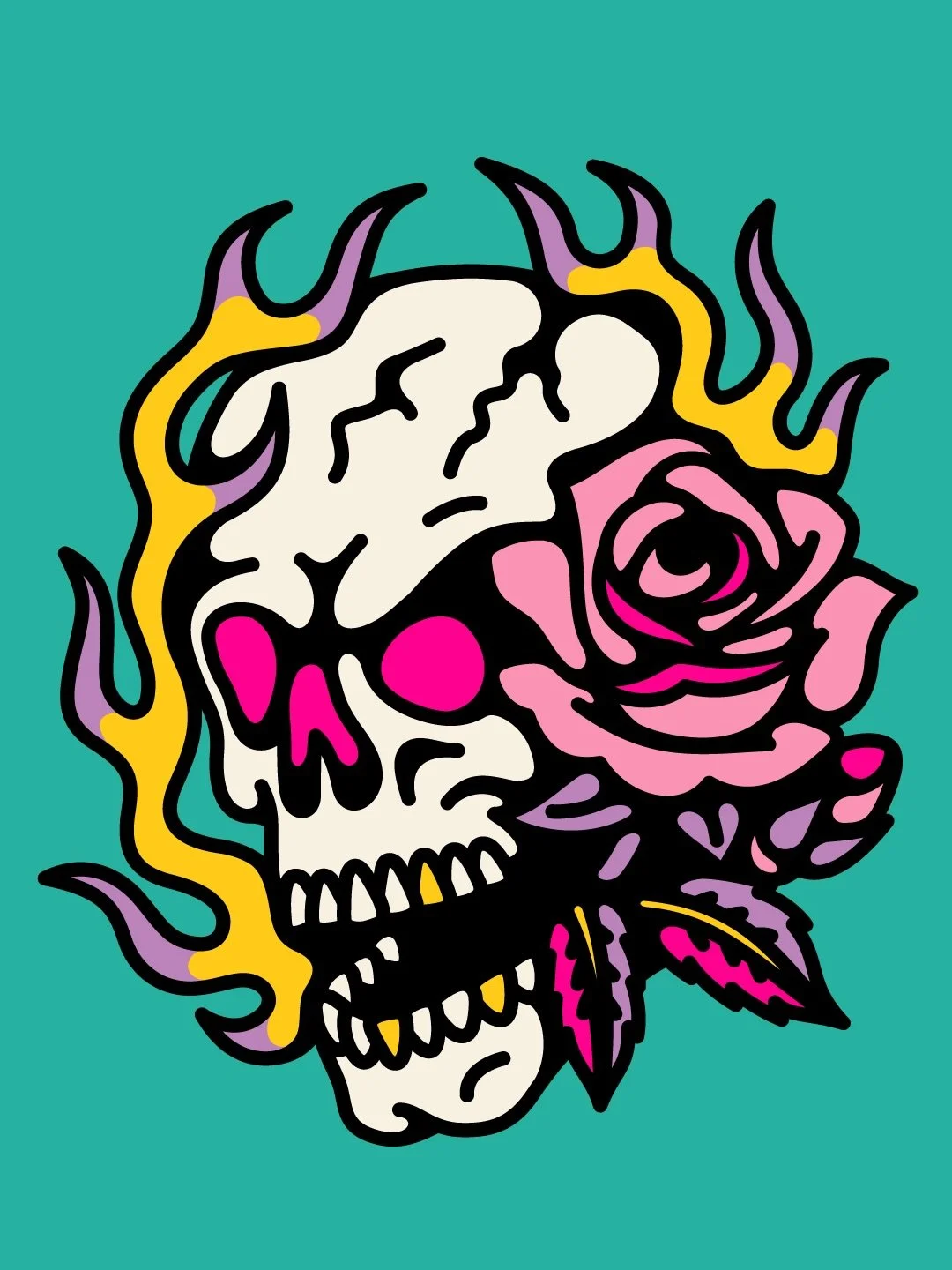 View fullsize 💀ðŸŒđðŸ”Ĩ #skull #rose #tattoodesign #merchdesign #illustration